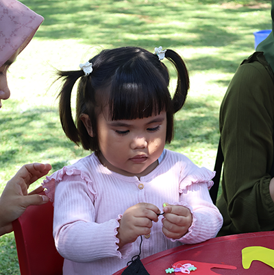 Kidsventure is a learning program with planned & purposeful outdoor experiences for children aged 1.5 to 5 years old. This program offers a direct experience as a stimulating source of fascination, personal growth, and breakthrough in learning. Children learn actively through what they do, encounter, & discover. Active learning develops the learning skills of inquiry, experiment, feedback, reflection, review, & cooperative learning. Moreover, children are guided to be independent in every activity.